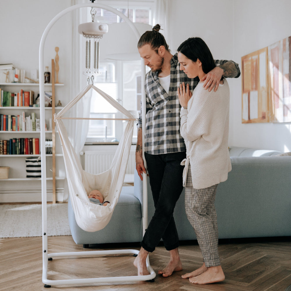 The idea for our motorized baby hammock was born out of a deep personal need. Days and nights of struggle, while our daughter Eileen remained restless, shaped the first experiences of my wife Kerstin and me as parents. Despite the advice of friends and the reassurances of the doctors, despite the numerous guides I pored over – nothing seemed to help. I was faced with a seemingly unsolvable problem.